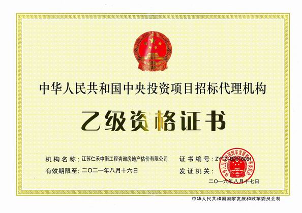 - 招標代理甲級資格證書